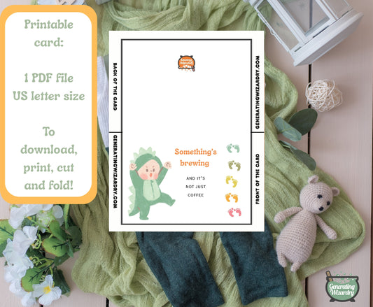 Printable Baby Somethings Brewing 7x5 inch card Instant download