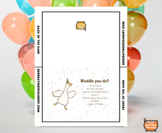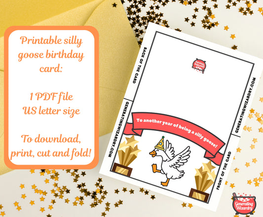 Printable Birthday Silly Goose 7x5 inch card Instant download