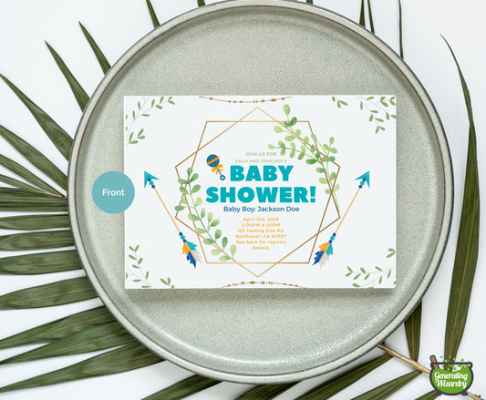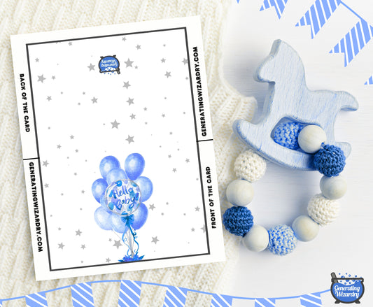 Printable Baby Hello Boy 7x5 inch card Instant download