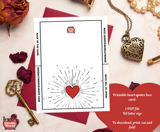 Printable Valentines Heart Ignites Love 7x5 inch card Instant download